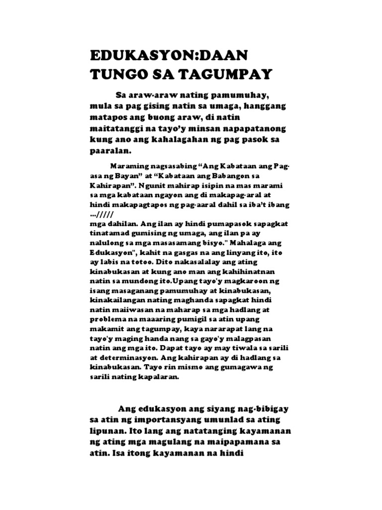 Sanaysay Tungkol Sa Edukasyon Halimbawa Ng Sanaysay