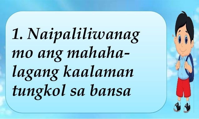 Ilang elemento meron ang isang bansa. Ang Pilipinas ay isang bansa dahil may mga naninirahan ditong tao may sariling teritoryo may. Ilang elemento meron ang isang bansa.